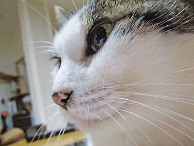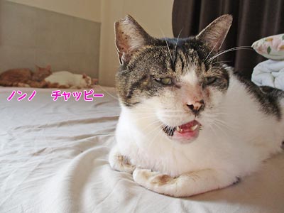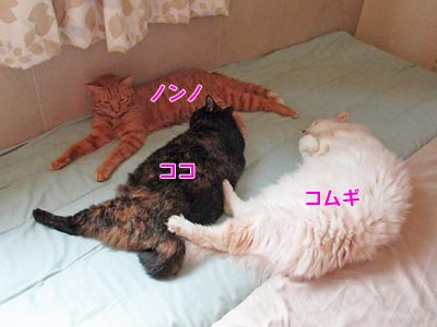 みつまめは食欲もあり、見た目は元気になっている。特に療法食は与えていない。経過観察でいいとのこと。まずはよかった。 ほかの猫たちも元気です。 ベッドでお昼寝3匹 ルンちゃんのアップ 私が丸テーブルの横に座るとルナがテーブルに飛び乗ってきてルワルワ・ウロチョロしてうっとおしい。おしりトントンをしてもらいたいのだろうけど、テーブルの上ではダメですよ。 |